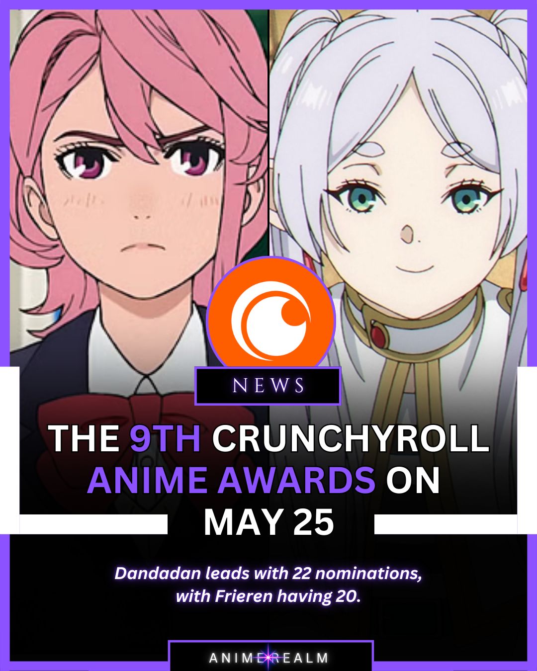 The 9th Crunchyroll Anime Awards are scheduled for may 25 in Tokyo. Currently, Dandadan is in the lead with 22 nominations, but Frieren: beyond journey’s end isn’t far behind with 20.